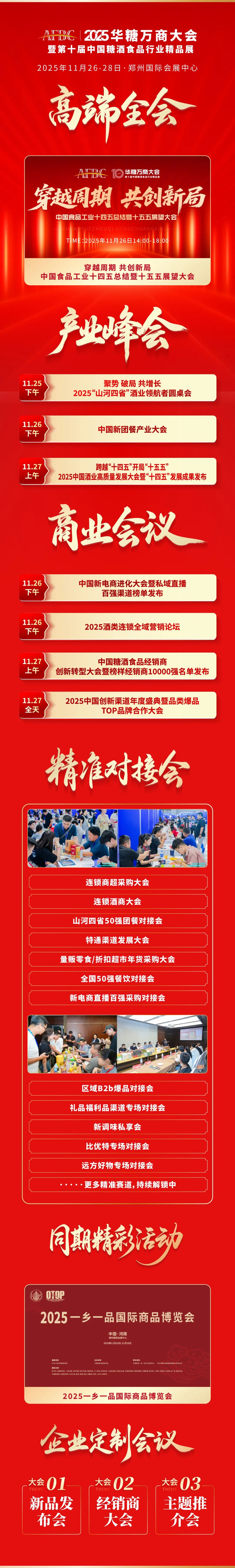 参与2025华糖万商大会,就是选择与趋势同行、与资源对接、与创新共舞。让我们携手突破行业迷雾,在分化中捕捉机遇,在竞争中重构优势,共同打造下一个“品类冠军”。